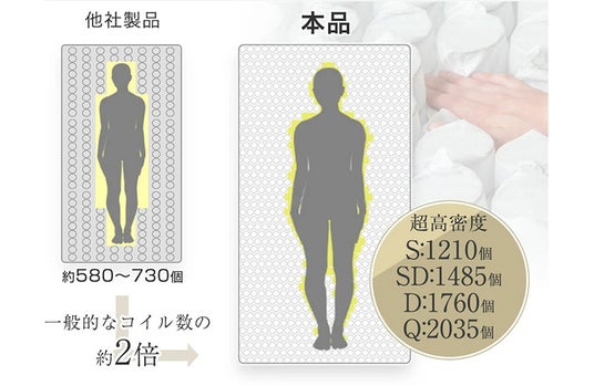 超高密度ポケットコイルを採用し優れた体圧分散性に