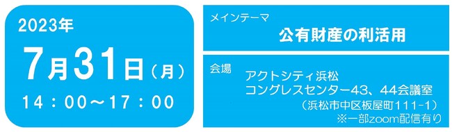 この度、2023年度第1回浜松市官民連携地域プラットフォームを以下のとおり開催します。今回は公有財産の利活用をメインテーマとし、よりよい制度のあり方を考えるため意見交換を行います。公有財産の利活用をはじめとした官民連携事業にご興味のある事業者の皆様のご参加をお待ちしております。