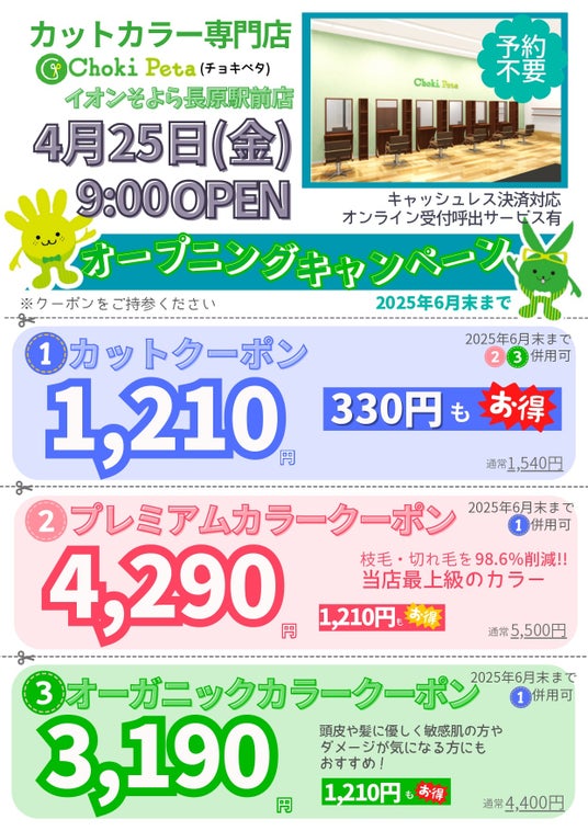 美容室チェーンを約350店舗展開する株式会社アルテジェネシス(横浜市中区/代表取締役社長 吉村 栄義)のグループ会社である株式会社ニューヨーク・ニューヨーク(京都市伏見区/代表取締役社長 小崎 昌平)は、チョキペタ イオンそよら長原駅前店を2025年4月25日(金)にオープンいたします。