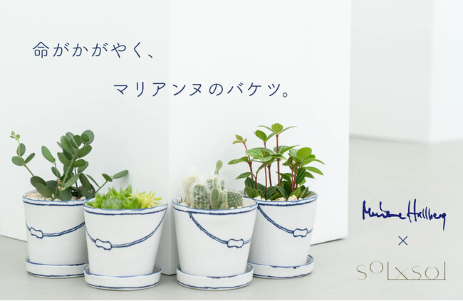 北欧の陶芸家、マリアンヌ・ハルバーグのsetoシリーズ最新作「バケツの植木鉢」と多肉植物専門ストア「solxsol(ソルバイソル)」のコラボレーションが実現。植木鉢単体と多肉植物とのセット商品が発表されました。