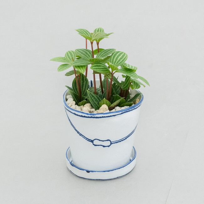 マリアンヌ・ハルバーグが作った「バケツ」のオリジナル作品から着想を得てから、1年以上かけて誕生したという瀬戸焼の「バケツの植木鉢」。マリアンヌの瀬戸焼シリーズを手がけている愛知県の窯元との共作で、何度もデザインの修正をし、サンプルを作り直して、やっと理想のかたちになった商品だそう。
