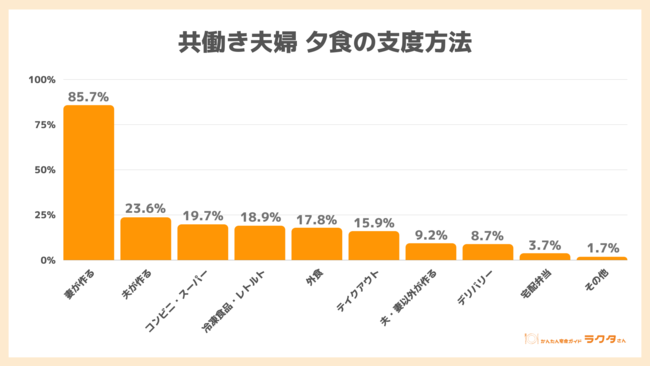 ナイル株式会社(本社:東京都品川区、 代表取締役社長:高橋飛翔、 以下ナイル)が運営する「かんたん宅食ガイド ラクタさん」にて、既婚・就業者の20代~50代男女1,754人を対象に、2023年2月13日~2月20日の期間で、仕事のある日の夕食事情についてアンケート調査を実施しました。