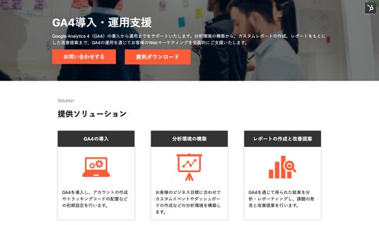 Google Analytics 4(GA4)の導入から運用までをサポートいたします。分析環境の構築から、カスタムレポートの作成、レポートをもとにした改善提案まで、GA4の運用を通じてお客様のWebマーケティングを全面的にご支援いたします。