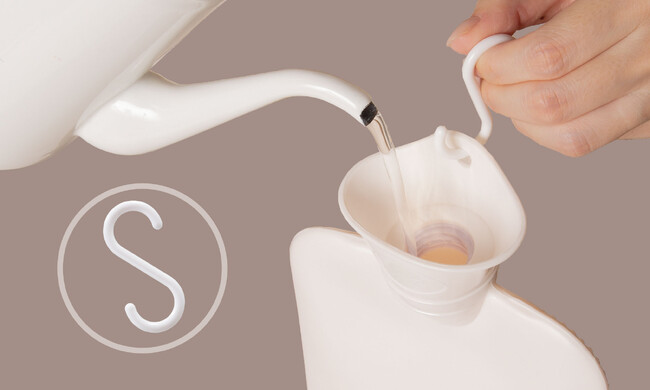 お湯を安全に注げるS字フック付き