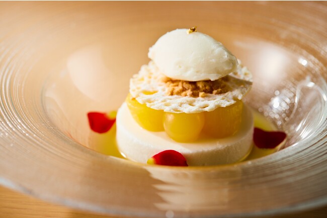 レモンの酸味を感じるソースで果実の甘味を引き締めた一品です。