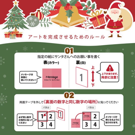 3.番号通りに貼り合わせると、みんなのお願いごとでアートが完成します!
