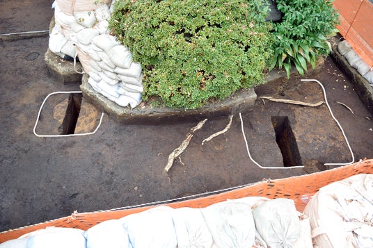 影向寺遺跡第44次調査で発見された幢竿支柱跡