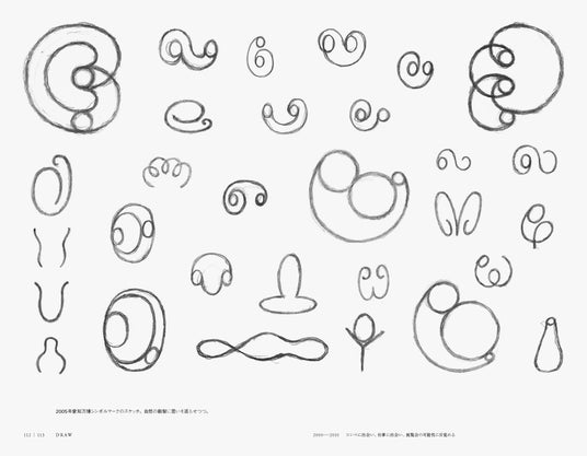 2005年愛知万博シンボルマークのスケッチ。自然の叡智に思いを巡らせつつ。(原研哉『DRAW』より)