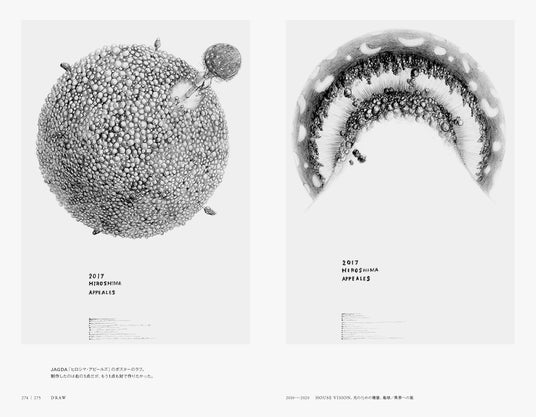JAGDA「ヒロシマ・アピールズ」のポスターのラフ。制作したのは右の1点だか、もう1点も対で作りたかった。(原研哉『DRAW』より)