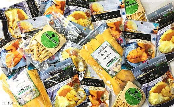 「アジアで食の『安全・安心・良品質』を提供する農業と食の総合カンパニー」を目指し、日本及びカンボジア産の果物を使用したドライフルーツやカシューナッツの販売を行っています。