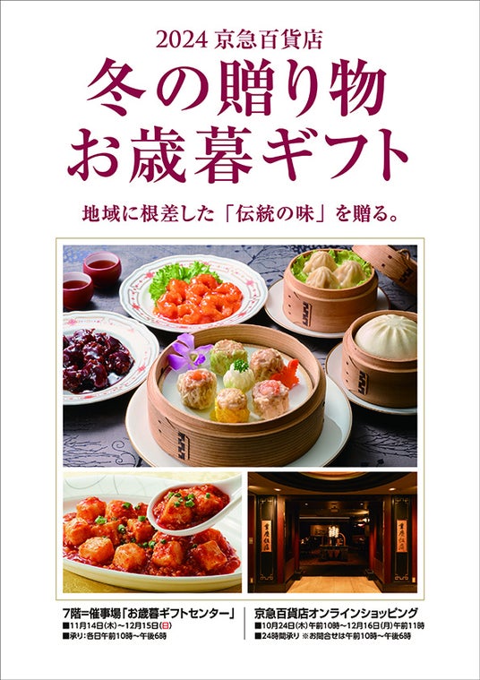 京急グループの株式会社京急百貨店(所在地:横浜市港南区,社長:金子 新司,以下 京急百貨店)は,『2024 冬の贈り物・お歳暮ギフト』を開設いたします。京急百貨店オンラインショッピングでは,2024年10月24日(木)10:00から12月16日(月)11:00まで,店頭では,2024年11月14日(木)から12月15日(日)の各日10:00から18:00まで承ります。