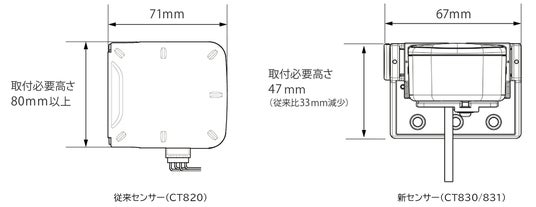 センサーの筐体を小型化し、取り付けに必要な高さを従来比で約33mm削減。