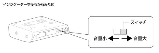 インジケーター後ろのスイッチでブザー音量を調節
