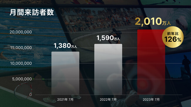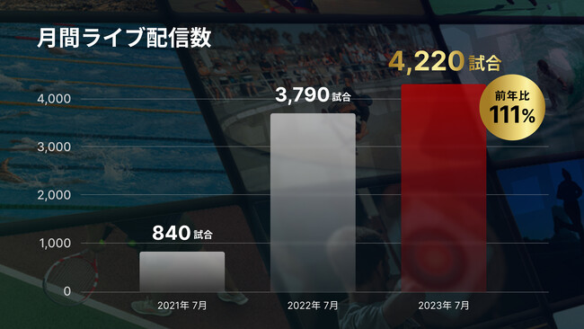 2023年7月は月間4,220試合以上を配信したことで、月間来訪者数も過去最高の2,010万人(前年比126%)を突破しました。