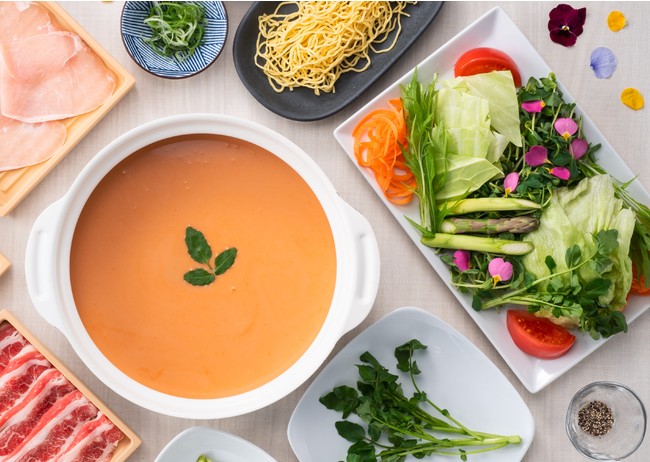 こだわりのお肉とたっぷりの野菜を楽しめる『しゃぶしゃぶ温野菜』(以下、温野菜)は、濃厚で贅沢な海老の旨みが野菜を引き立てる「オマール海老の和風ビスク」 を2022年3月24日(木)から5月12日(木)まで期間限定で販売します。