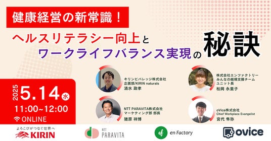 株式会社エンファクトリー(東京都千代田区、代表取締役社長CEO加藤健太)は、NTT PARAVITA株式会社(大阪府大阪市、代表取締役社長中野 康司)、oVice株式会社(石川県七尾市、代表取締役CEOジョン・セーヒョン)、キリンビバレッジ株式会社(東京都中野区、代表取締役社長井上 一弘)とともに、2025年5月14日(水) 11:00-12:00より、『健康経営の新常識! ヘルスリテラシー向上とワークライフバランス実現の秘訣』セミナーを開催します。(詳細はこちら:https://k-naturals.jp/seminar_250514)