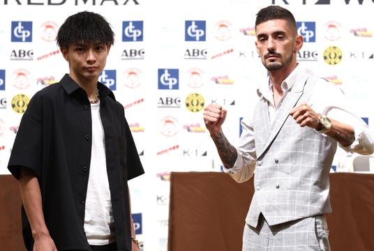 「(意気込みと相手の印象)明日に向けて準備をしてきましたので、しっかりと勝ちたいです。身長差があるかなと思っていましたが、なかったなとやりやすいかなと思いました。ISKAのタイトルとか持っている選手なので、楽しみです。(相手が踏み台にしたいといったことについて)一回戦なんで、同じ気持ちじゃないですかね。(対戦相手が変わったことの影響は)そういうことはあると思うので、とくに問題ないです。変わる前の相手も今回と同じサウスポーの選手なので、それはラッキーだったなと思います」アンジェロス・マルティノス
