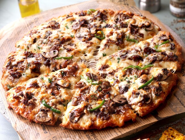 お店で丁寧に仕込むブラウンマッシュルームを始め、11種類ものトッピングで仕上げた具だくさんのガーリックピザ。