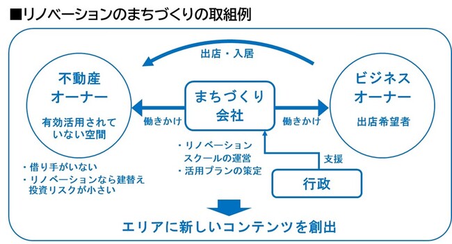 創業・開業にかかるハードルの低減に努め、新しいビジネスに挑戦しやすいまちに進化させる。創業及び集客にシナジーを生むソフト・ハードの仕組みを構築する。