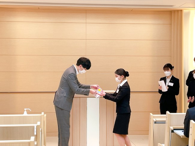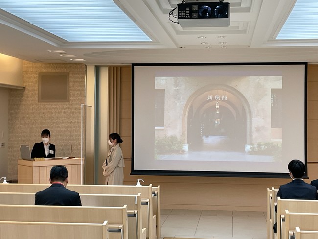京都ホテル観光ブライダル専門学校は2022年1月24日(月)、ホテル学科2年生による「レセプションコンテスト」を実施しました。学生の中から選ばれたチャレンジャーは、ホテルのフロントレセプションにおける接客対応についての課題2点を披露。表情・所作・言葉遣い・プレゼンテーション能力などをポイントとして表彰を行うコンテスト形式で行いました。なお、チャレンジャーは学生同士による推薦として投票で選出。当日は審査の結果、3賞が決定しました。