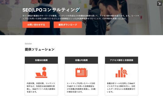 H&Kではこれまで数多くの企業様でSEO/LPO施策のご支援およびに、包括的なWebマーケティングのご支援を行ってまいりました。これまで培ってきたノウハウを活かして、お客様のビジネスニーズや競合状況を正確に理解し、お客様の状況に合わせた柔軟なSEO/LPO施策を行います。