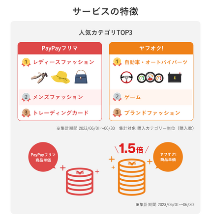 また、「Yahoo!オークション」「Yahoo!フリマ」は、サービス名称の変更後も出品された商品が落札・購入された際にかかる手数料(※1)を変更することなく、これまで以上に「PayPayが使える・貯まるサービス」として、「PayPay」を利用するユーザーにお得で便利なサービスを提供していきます。