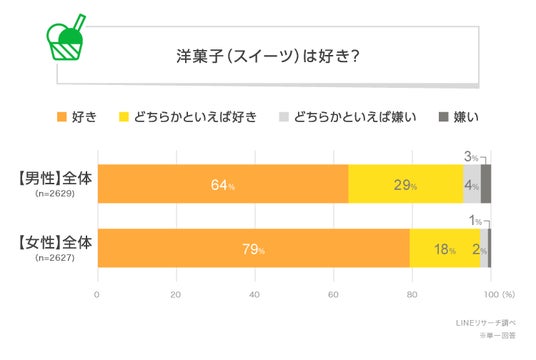 このたびLINEリサーチでは、全国の10~60代を対象に、洋菓子(スイーツ)が好きかどうかや、好きな洋菓子について調査しましたので、その結果をお知らせします。