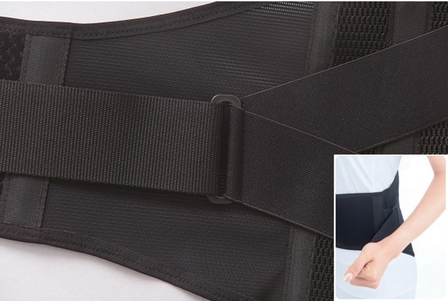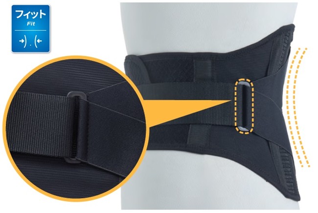 少ない力で簡単に引き締め(締め付け)・調節ができるアジャスター付き補強ベルト
