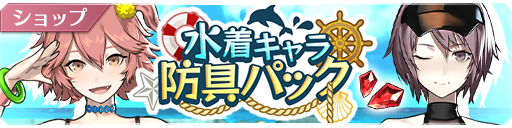 「ショップ」に期間限定で、セイディとパーシの水着キャラ防具パックが追加されます。