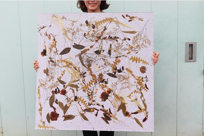 廃棄処分予定の花材を練り込んだ繊維リサイクルボード