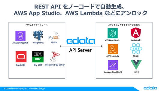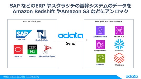 CData Software Japan 合同会社(本社:アメリカノースカロライナ州、日本オフィス:宮城県仙台市、代表社員 職務執行者:疋田 圭介、以下CData)は、6月25-26日に幕張メッセで開催される『AWS Summit Japan 2025』に出展します。CData のブースでは、SAP などのERP やスクラッチの基幹システムで管理している売上や在庫などをはじめとするデータ資産をAmazon Redshift やAmazon S3 にノーコード・3ステップで連携・統合可能な『CData Sync』と、これらのデータをAWS App Studio などのローコード・ノーコードツールで活用するためのOpenAPI(Swagger)・OData といったスタンダードな規格に対応したREST API をノーコードで生成できる『CData API Server』のデモと最新の事例を紹介します。