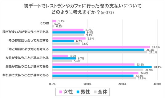 初デート時の食事代の支払いに対する価値観は“三分化” 独身男女の約3割が支払い時の「不快経験あり」~男女間の食事の支払いに関する認識のずれも~
