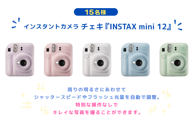 ・インスタントカメラ チェキ『INSTAX mini 12』:15名様