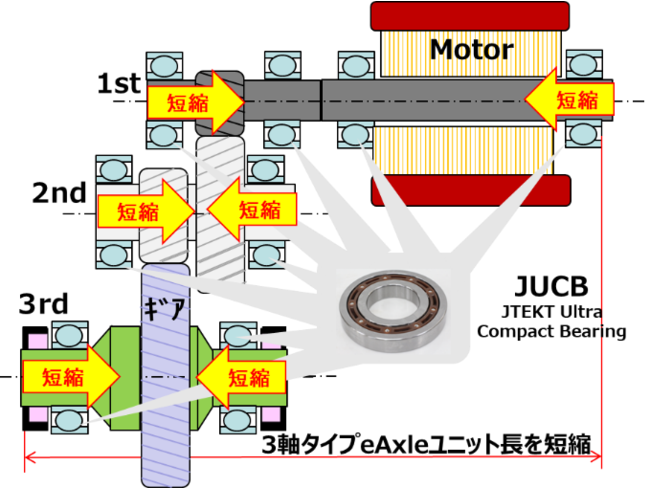 株式会社ジェイテクトは、今後のBEV(電気自動車)の市場拡大を見据え、eAxleに搭載される軸受を幅狭化した、超幅狭軸受「JTEKT Ultra Compact Bearing TM (以下「JUCB」)」を新たに開発いたしました。