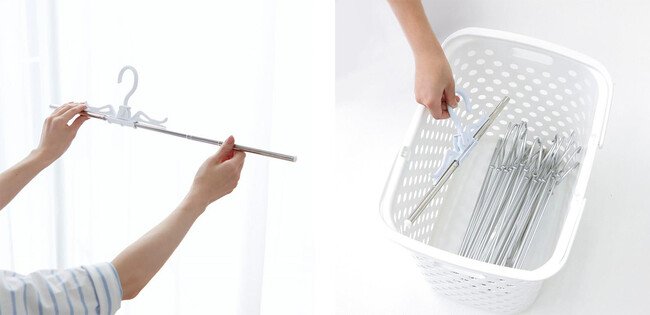 コンパクト設計(約90cm~約39cm)で使わないときは縮めて、すき間やハンガーと一緒に収納できるのが嬉しいポイント。