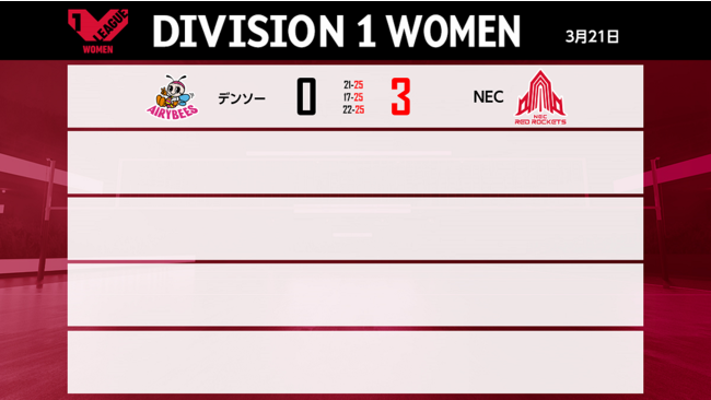 バレーボール国内最高峰リーグ V.LEAGUE【3月21日の試合結果】