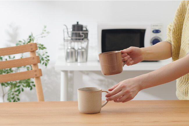 そしてこの度、KEYUCA初の試みとして、これまでも数々の商品を一緒に生み出してきた日本最大の食器産地である岐阜県東濃地方にて、リサイクル食器のマグカップの開発に取り組みました。リサイクル素材を使用した食器の印象として“高そう”、“使いづらそう”というイメージの方もいらっしゃるのではないでしょうか。今回発売する「Landリサイクルマグ」は、実際にリサイクル現場や工場に足を運び、現場の方と相談を重ね、一般的な磁器素材のマグカップと同様の機能性とお求めになりやすい価格で展開できました。また、一個からでも生活に取り入れやすいよう、シンプルで使いやすいデザインに仕上げました。