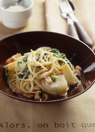 さけの柚子胡椒風味/桜えびとアスパラのスパゲッティ