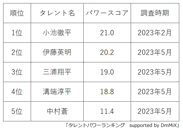 本ランキングは、2023年5月度に実施したタレント調査データ(一部過去実施データ)を利用し、タイトルに応じてランキング形式でまとめたものです。
