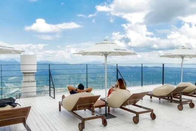 ハイキングや登山はせずとも、山の上でゆっくりしたい!という願望も叶えられる「Hakuba Mountain Beach」が標高1,400mのうさぎ平にあります。ビーチラウンジでゆったりと寛ぎながら、オリジナルフードを楽しみ、山の上にあるサウナやジャグジーでリフレッシュできます。