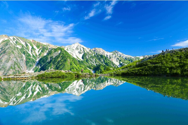 白馬連峰の唐松岳から四方八方に尾根が延びていることから名付けられたという「八方尾根」。黒菱平から上部は長野県天然記念物に指定され、ここにしかいない固有種や高山植物、カモシカや雷鳥なども多数生息しています。ここには信州を包む山々を見渡す大パノラマがあり、まさに"北アルプスの展望台"と呼ぶにふさわしい絶景が広がります。雪に押し出された土砂が堆積した場所に、雪解け水や雨水が溜まってできた美しい八方池は天然の池です。
