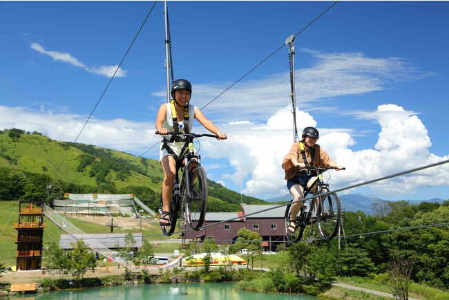 世界で話題の新感覚アクティビティが体験できます。メインアクティビティは主に6つ。「トビダス」「コギダス」「アミダス」「カベダス」「フミダス」「ポチャダス」です。「コギダス」は大きな池の上に1本のワイヤーを自転車で綱渡り。水面から高さ9mのスリリングある体験ができます。「トビダス」はゴムチューブに乗り、高さ12mから一気に滑り出し加速したところで空中へ!「フミダス」は高さ6mからエアマットに向かって一気に急降下!一歩踏み出す勇気が試されます。