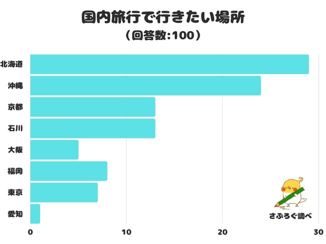 株式会社レビュー(https://jafmate.co.jp/)が運営する暮らしに役立つ情報メディア「さぶろぐ」( https://sublogg.com/ )は、日本全国の20代以上の方を対象に「国内旅行で行きたい場所」についてのアンケート調査を実施しました。