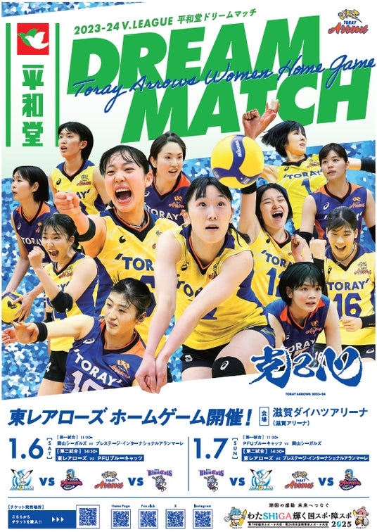 株式会社平和堂(滋賀県彦根市、代表取締役社長執行役員:平松正嗣)は、2024年1月6日(土)₋7日(日)の2日間にわたり、滋賀ダイハツアリーナ(滋賀県大津市)にて、平和堂が協賛する「東レアローズ」のホームゲーム「平和堂ドリームマッチ」を開催しますのでお知らせいたします。