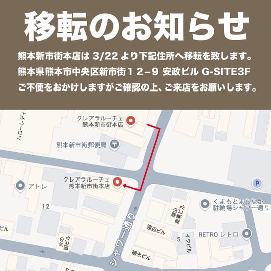 Crea la Luce熊本新市街本店3月22日移転致しました!