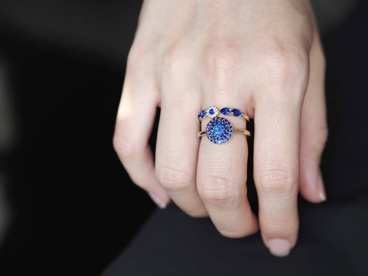 スリランカ産ブルーサファイアの澄んだ青を敷き詰め、繊細に輝くモザイクに