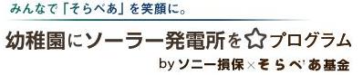 (*1) 「幼稚園にソーラー発電所を☆プログラム」:ソニー損保が2009年から開始したプログラムで、当社の「保険料は走る分だけ」の自動車保険における、ご契約者の走行距離を契約時に確認する仕組みを活用した寄付活動。実際の走行距離が、ご契約時より短かった場合、予想より排ガス(CO2)排出量が減り環境保全に貢献されたと考えられます。このご契約者の環境への貢献をさらに大きくできるよう、ご契約者が予想より走らなかった距離の総計をもとに定めた額を、そらべあ基金へ寄付しています。