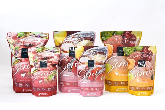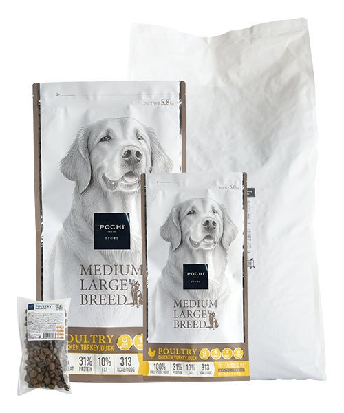犬の個性に合わせて毎日のトッピングを楽しめる総合栄養食「POCHI ザ・ドッグフード」シリーズの発売を皮切りに、2020年に3歳から始めるシニアフード「POCHI ザ・ドッグフード エイジングケア(現エイジングケアシニア)」シリーズを発売。2023年からは療法食の開発を始め、同年にスーパープレミアム品質の療法食「POCHI犬用食事療法食 腎臓ケア フレッシュチキン」を、2024年に「POCHI犬用食事療法食 消化器ケア 低脂肪 フレッシュターキー」を新発売しました。また、2025年には雑誌『RETRIEVER』とタッグを組み、中・大型犬の悩みにトータルで応える生肉使用のおいしい総合栄養食「POCHI ミディアムラージブリード」を発売したほか、美しい体づくりのための総合栄養食「POCHI ボディヘルス」シリーズを新発売しました。