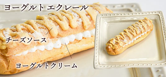 ヨーグルト風味の生クリームをたっぷりと詰め、仕上げにヤギミルクパウダーと、とろりとしたチーズソースをかけました。ほどよい酸味とやさしい甘さが調和した、爽やかな味わいを楽しめる一品です。