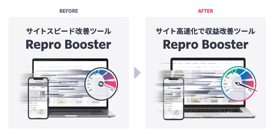 「Repro Booster」は、表示速度と体感速度の両面からWebサイトを高速化し、CVR向上と収益改善を実現する“サイト高速化で収益改善ツール”です。